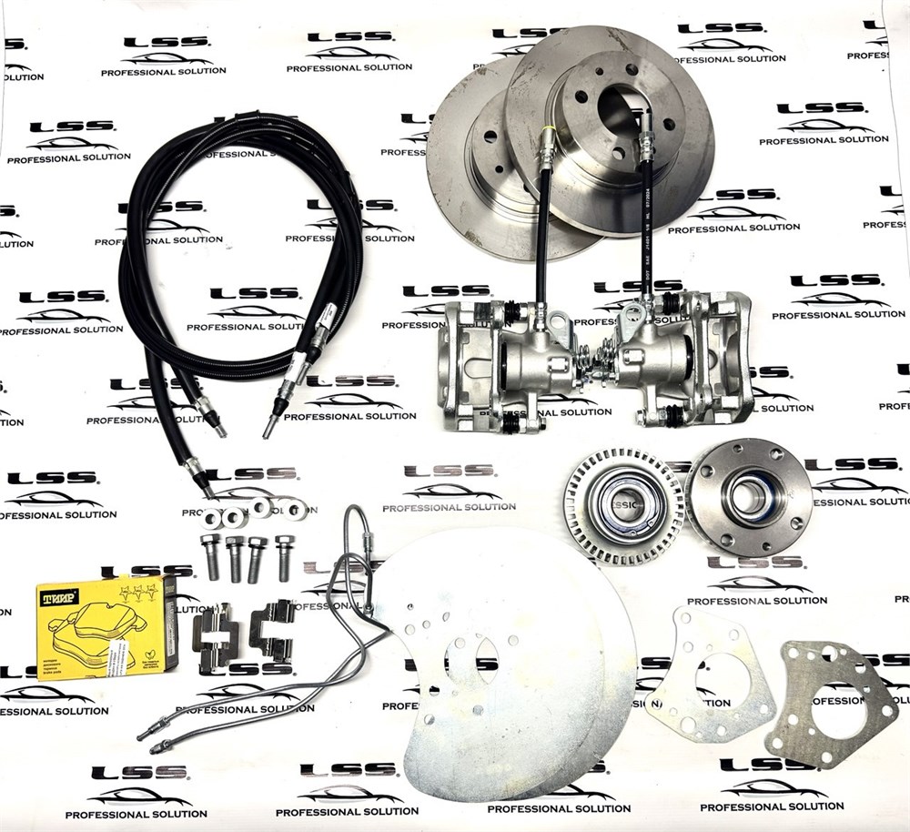 Комплект поставляется с задними ступицами под АБС. Если у Вас имеются такие ступицы, то Вы можете приобрести комплект без АБС и доукомплектовать его самостоятельно своими ступицами.